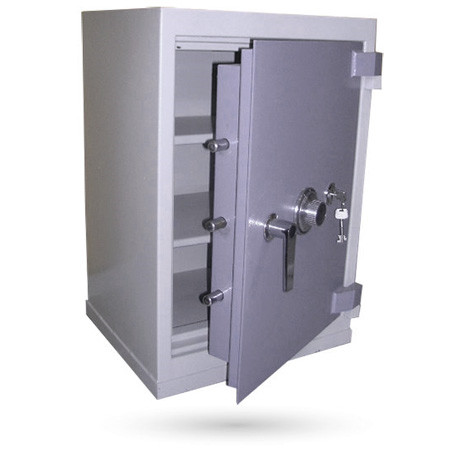 Coffres forts réalisés en triples parois de tôles en acier noir de 3mm d’épaisseur entre les quelles du béton armé vibré très résistant est coulé repoussant ainsi la chaleur et le feu vers l’extérieur (Durée 120 minutes).